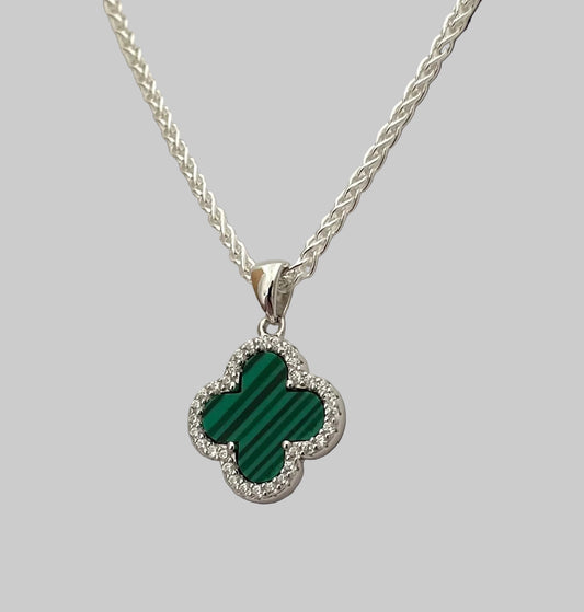 A Spring Edition Clover Necklace Green Malachite Solid 925 Sterling Silver Italy