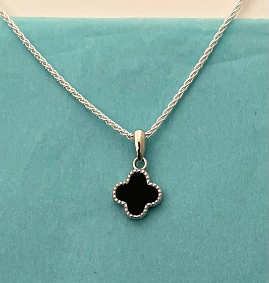 A Spring Edition Clover Necklace With Black Agate Solid 925 Sterling Silver Italy