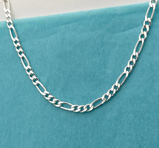 Bracelet Figaro Link Solid 925 Sterling silver Italy