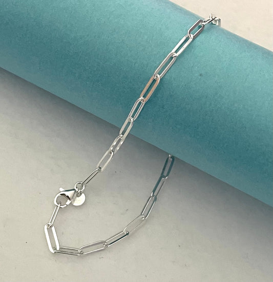 Anklet Paperclip Shiny Flat Link Solid 925 Sterling Silver Italy