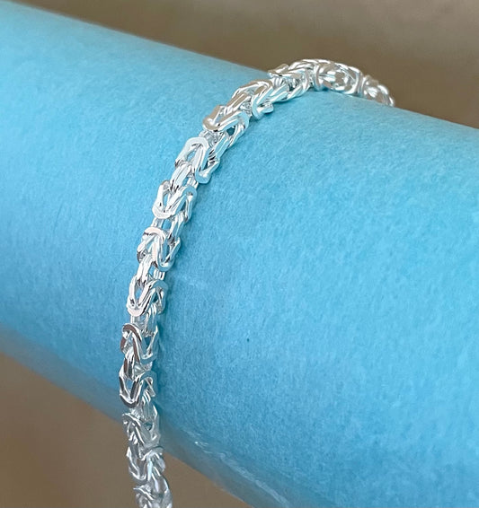 Bracelet Four Sided Byzantine Solid 925 Sterling Silver Italy
