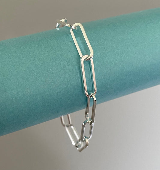 Bracelet Extra Thick 6mm Paperclip Squared Link Solid 925 Sterling Silver Italy