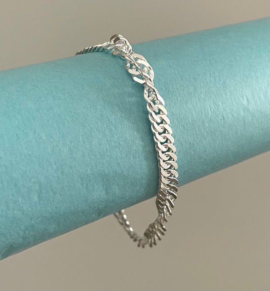 Bracelet Singapore Thick Link Solid 925 Sterling Silver Italy