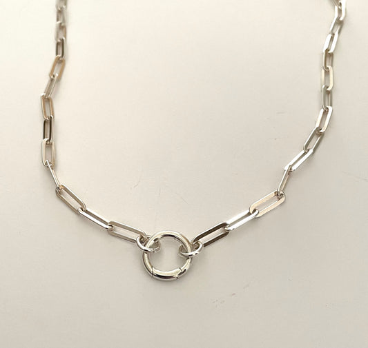 A Limited Edition Paperclip Charm Holder Necklace Solid 925 Sterling Silver Italy