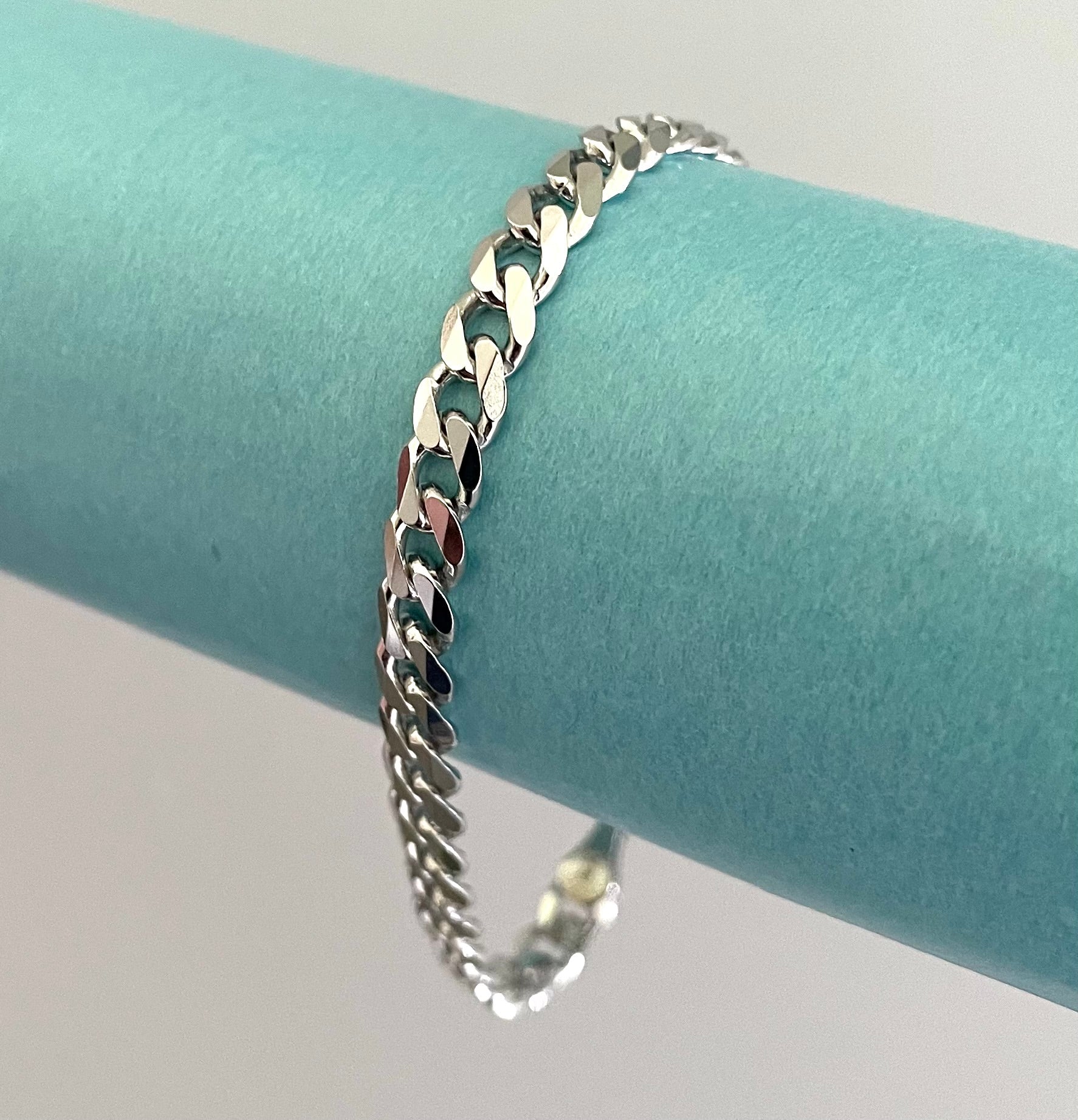 Timeless, classic and beautiful! This bold link Curb bracelet is perfect for everyday wear, it's nice and strong, you don't have to worry about it. The links are very substantial at 6mm in width. Very shiny and reflective, it really makes a statement! A fabulous premium lifetime bracelet with nice weight to add to your jewellery collection! Secures with a large strong lobster clasp. 7.25 inches in length. Solid 925 sterling silver from Italy.