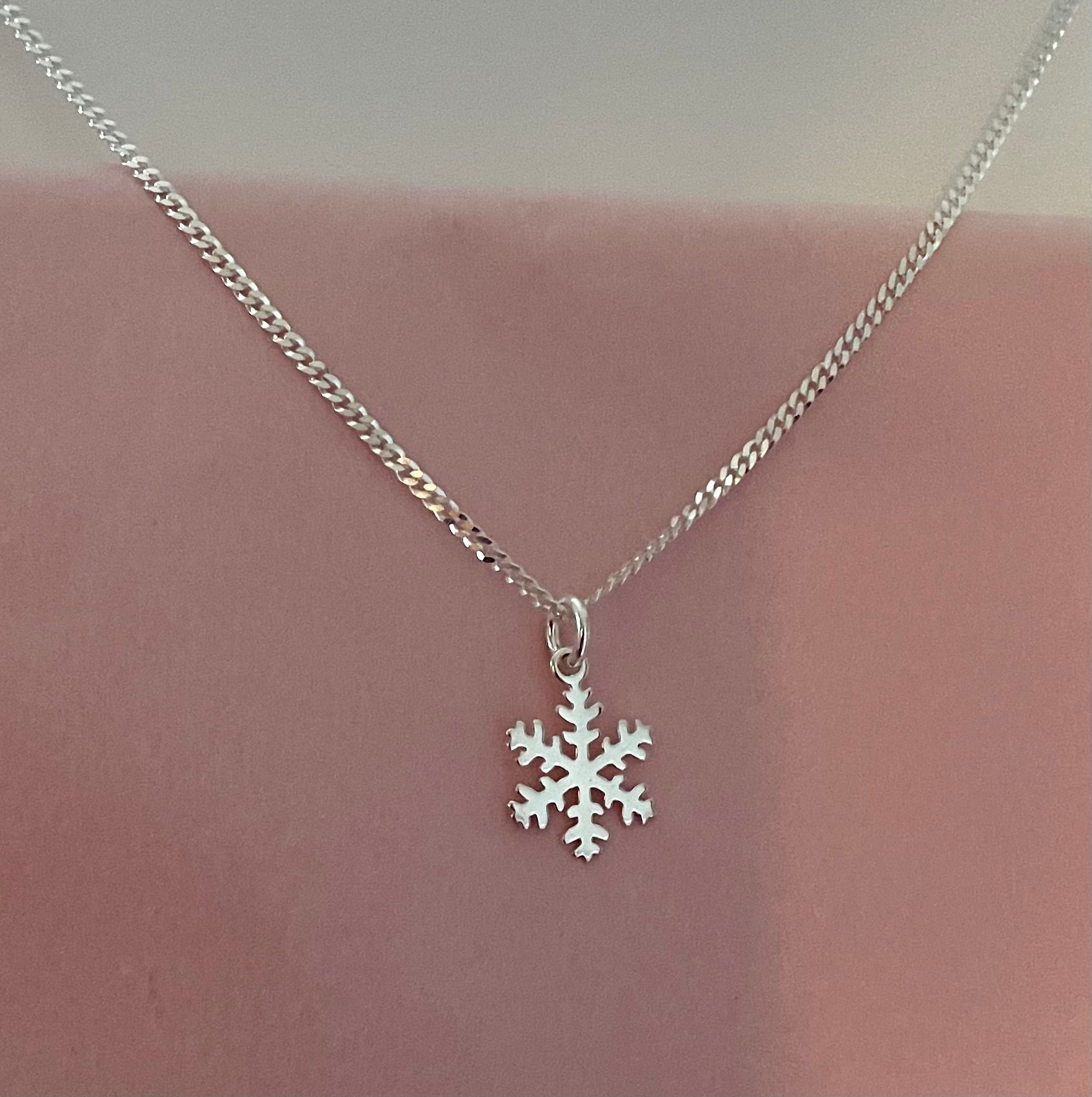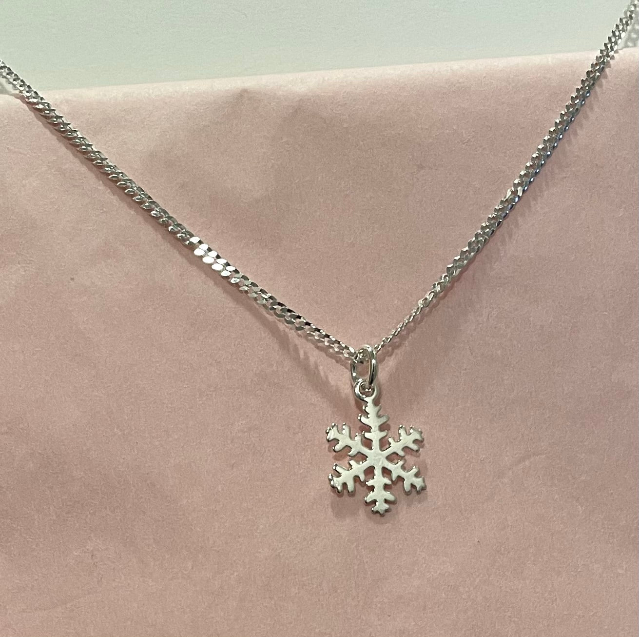 Add a little sparkle to your winter! This stylish necklace features a beautiful snowflake pendant on a sparkly curb chain. The curb links are diamond cut so it catches the light and sparkles! Links are that just right size for layering at 2mm in width. Length is 18 inches. Secures with a sturdy lobster clasp. Solid 925 sterling silver from Italy.
