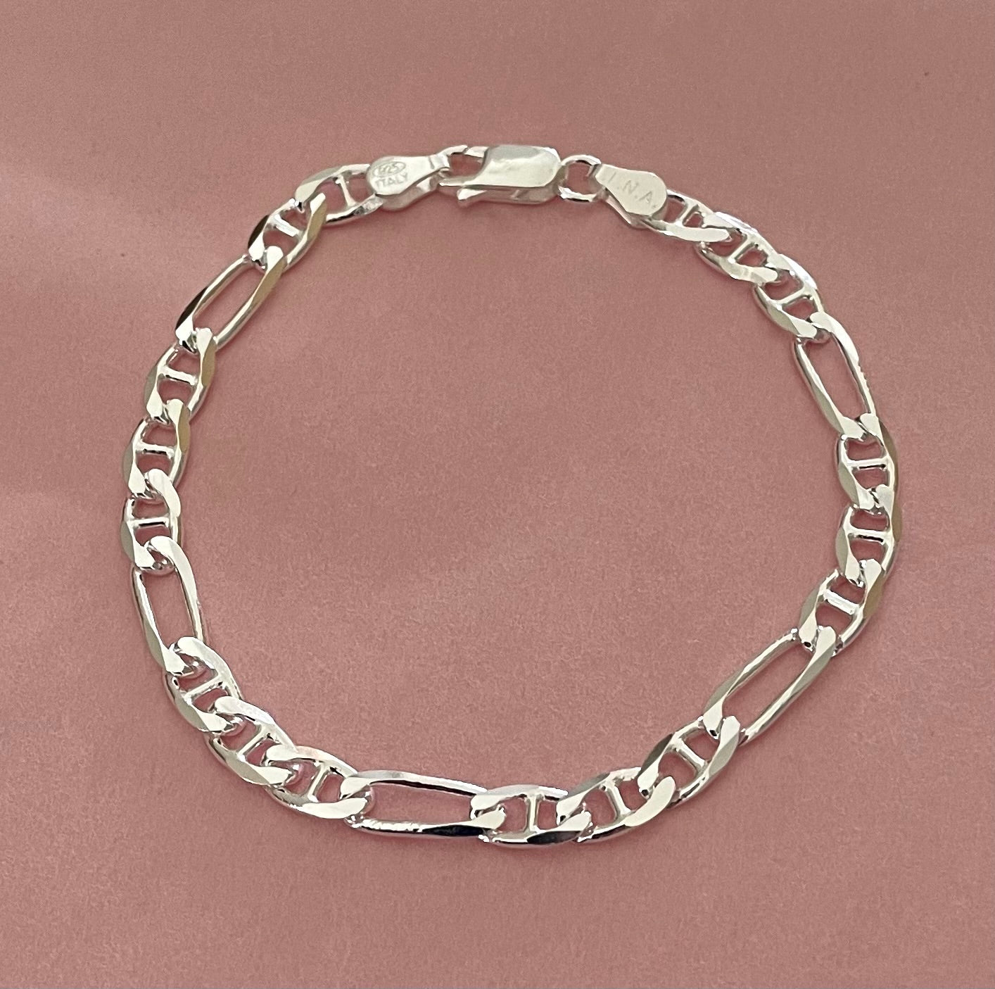 Bracelet Figaro Link Solid 925 Sterling silver Italy