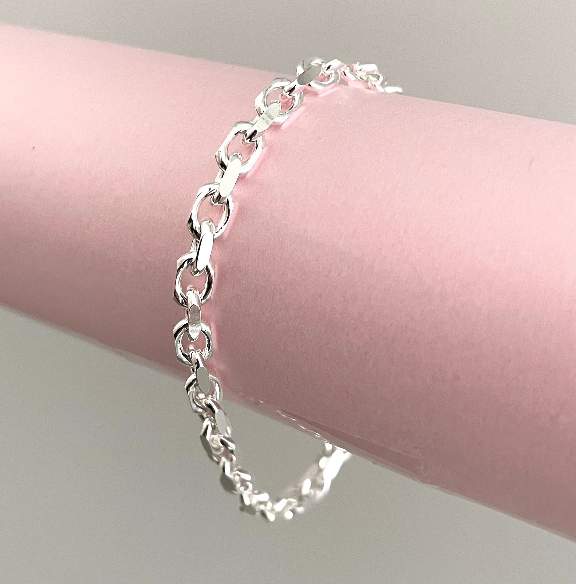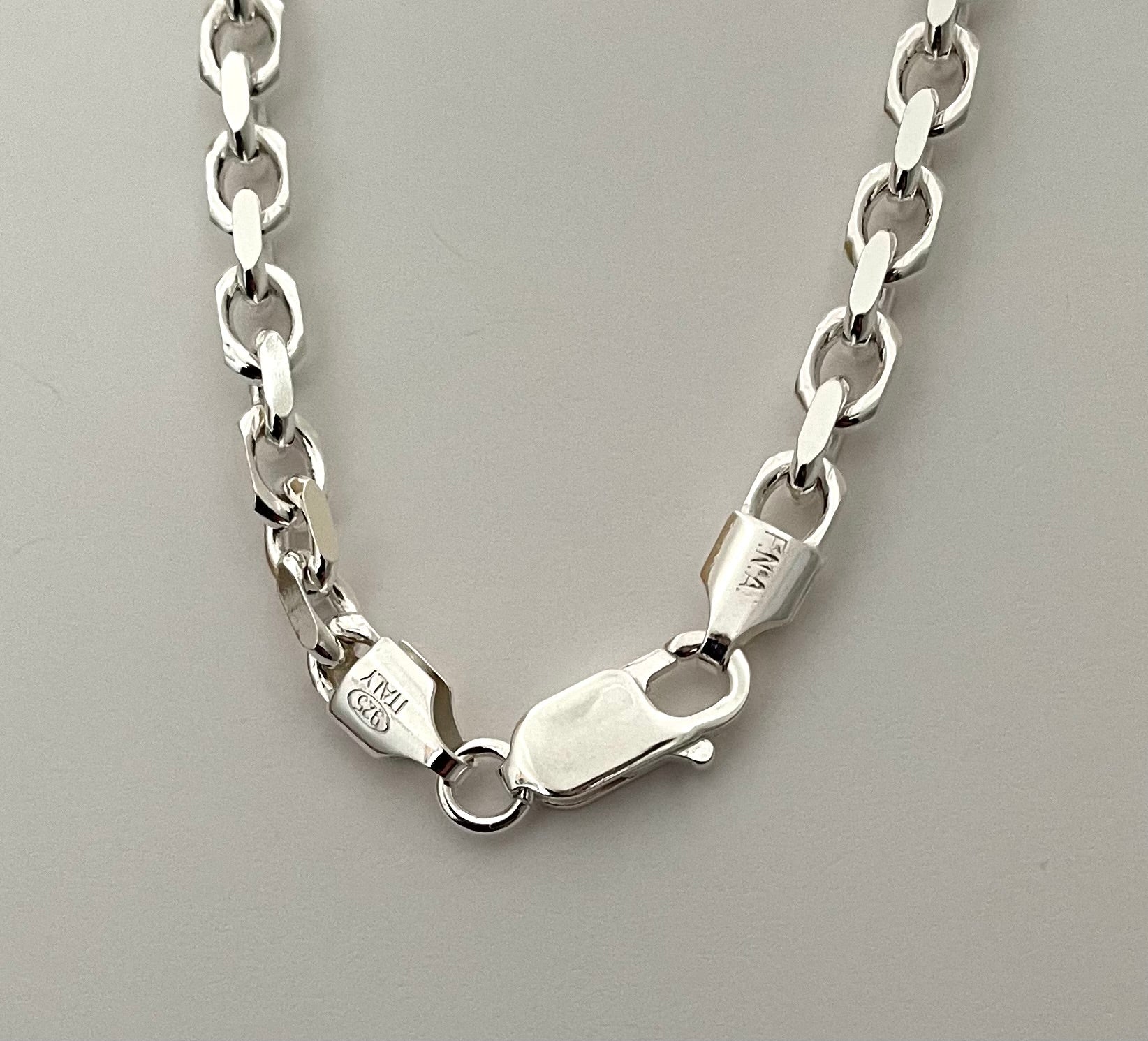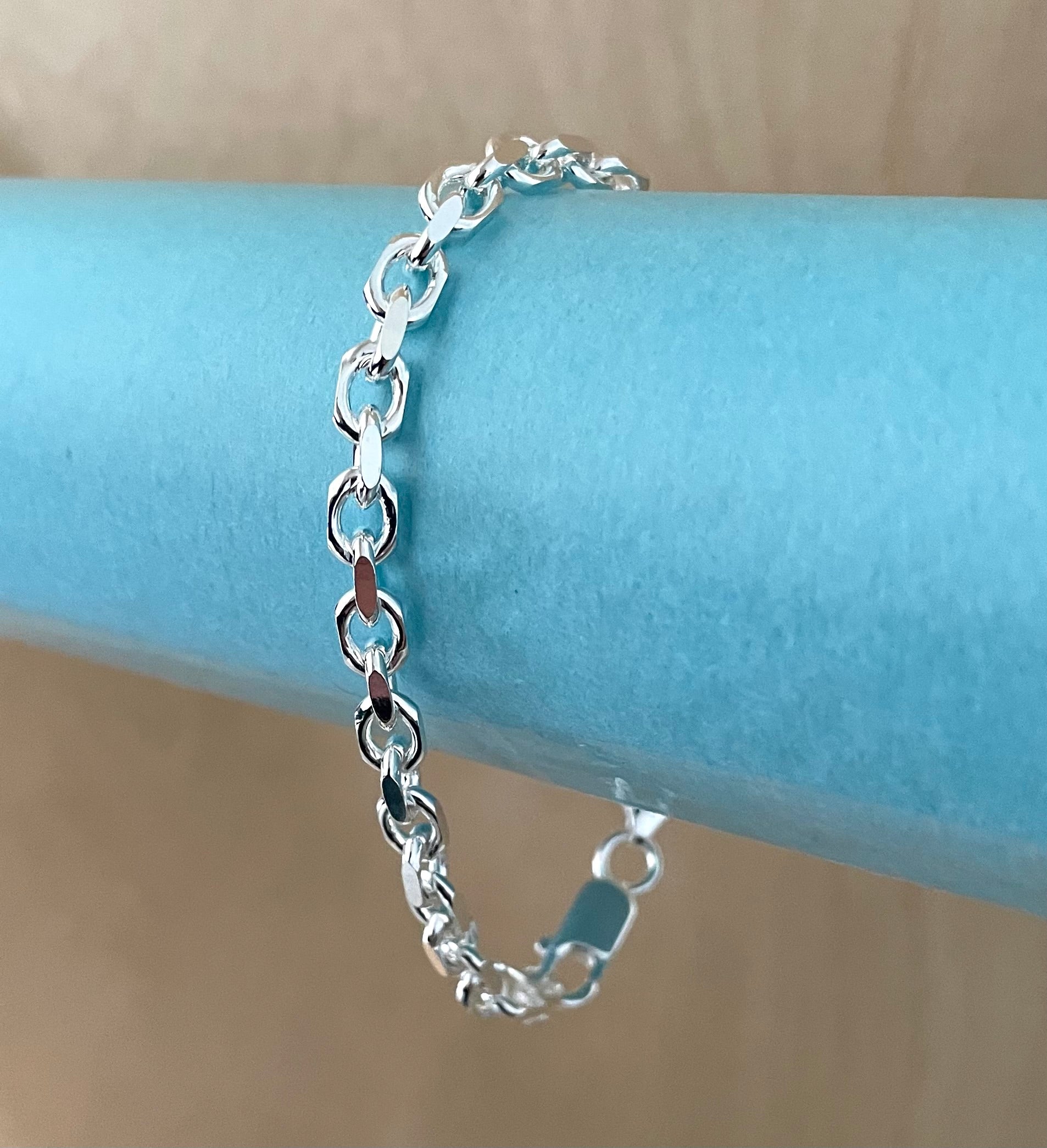 This premium bracelet is bold and fashionable with super stylish extra thick links that really make a statement! The cable link is a "must have" in your jewellery collection. Links size is very substantial at 4.9mm. Very shiny and reflective, it catches the light and sparkles. Has nice weight and secures with a large strong lobster clasp. 7.5 inches in length. This is a fabulous lifetime bracelet you will always cherish. Solid 925 sterling silver from Italy.