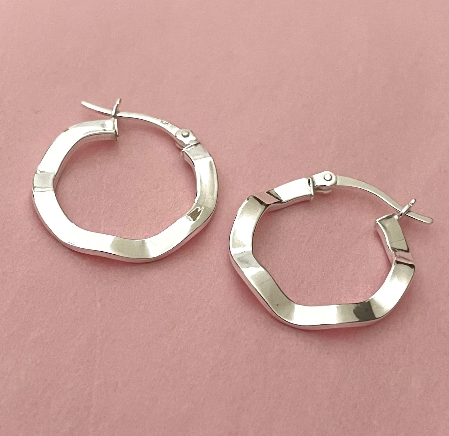 Perfectly pretty! These beautiful wavy hoops will be an amazing addition to your jewellery collection! Super pretty design, not too classic, with just a hint of quirky. Shiny and reflective, they show up well. You'll want to wear these often. Size is 20mm (medium). Solid 925 sterling silver.